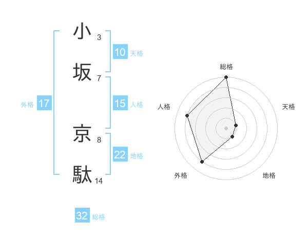小坂 京駄さんの総格は32画の5点!