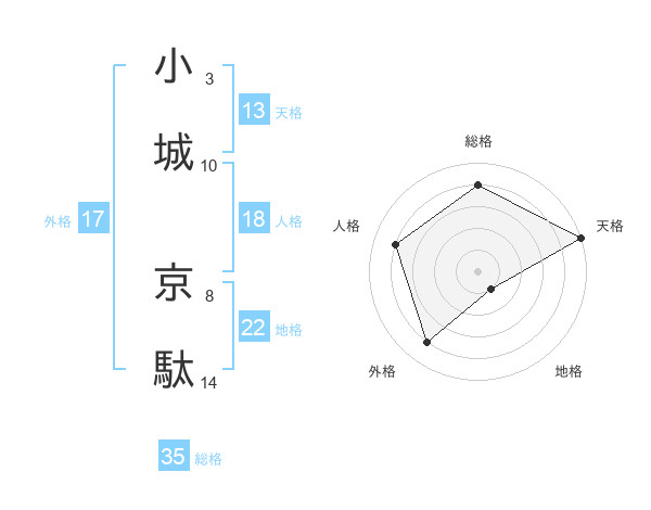 小城 京駄さんの天格は13画の5点!