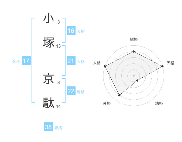 小塚 京駄さんを姓名の画数から五運を鑑定