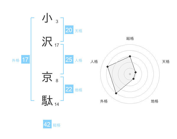 小沢 京駄さんの総格は42画の3点!