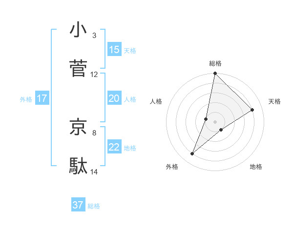 小菅 京駄さんを姓名の画数から五運を鑑定