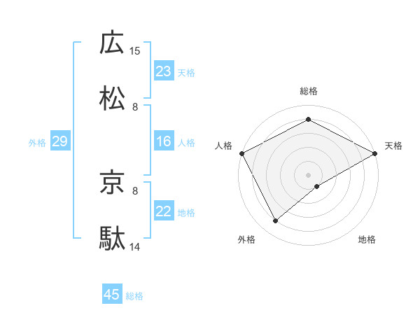 広松 京駄さんの総格は45画の4点!