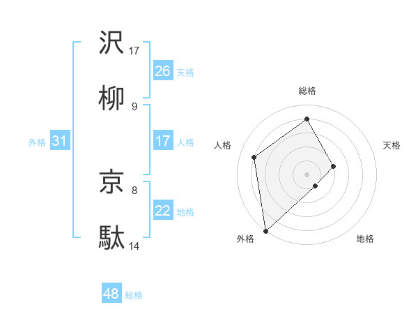 沢柳 京駄さんの外格は31画の5点!