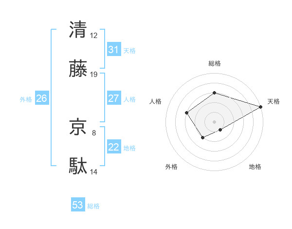 清藤 京駄さんを姓名の画数から五運を鑑定
