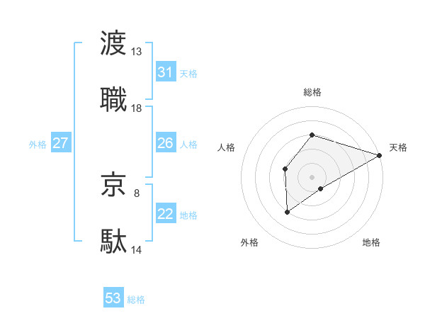 渡職 京駄さんを姓名の画数から五運を鑑定