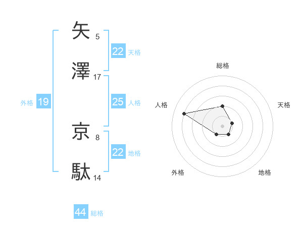 矢澤 京駄さんを姓名の画数から五運を鑑定
