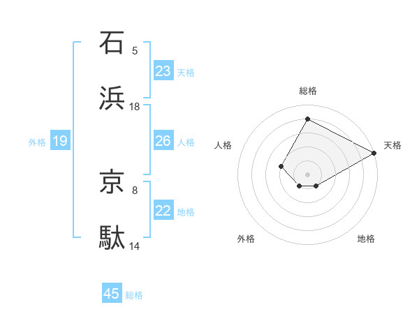 石浜 京駄さんの総格は45画の4点!