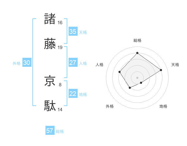 諸藤 京駄さんを姓名の画数から五運を鑑定