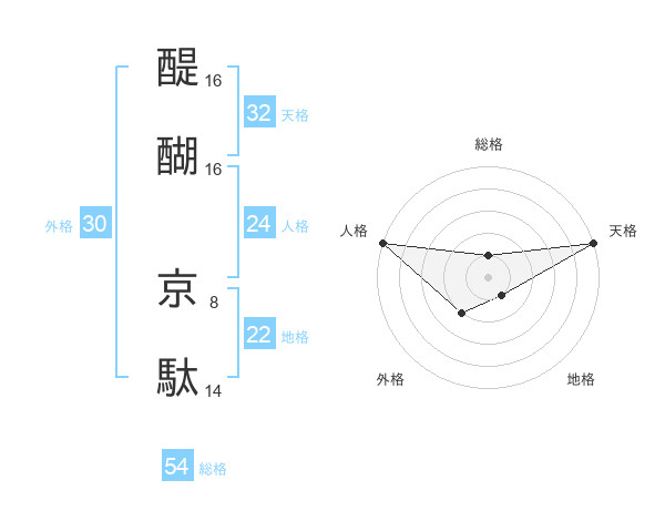 醍醐 京駄さんの総格は54画の1点!