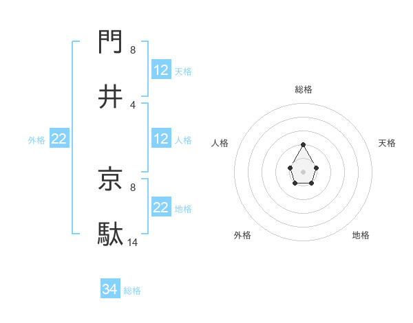家系が持つ宿命的な運勢を表します。祖先から受け継いだ苗字ですので自分の力が及びません。家柄を象徴します。