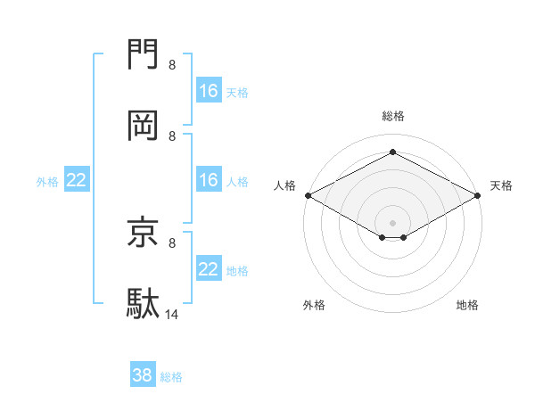 門岡 京駄さんの地格は22画の1点!