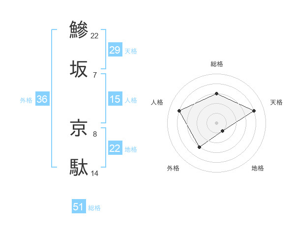 鰺坂 京駄さんの総格は51画の3点!