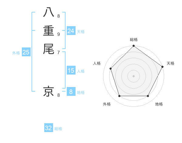 八重尾 京さんの総格は32画の5点!