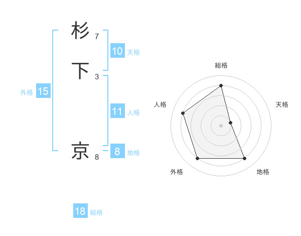 杉下 京さんの総格は18画の4点!