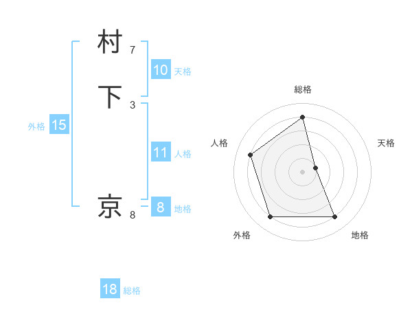 村下 京さんの総格は18画の4点!