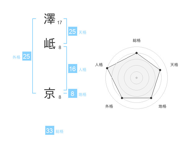 澤岻 京さんの人格は16画の5点!