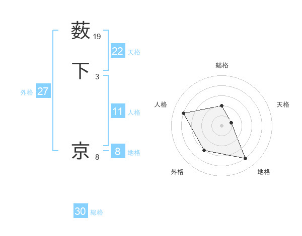 薮下 京さんの天格は22画の1点!