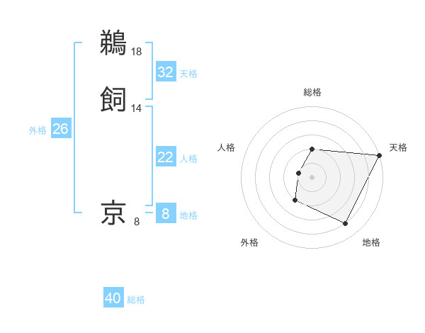 鵜飼 京さんの総格は40画の2点!