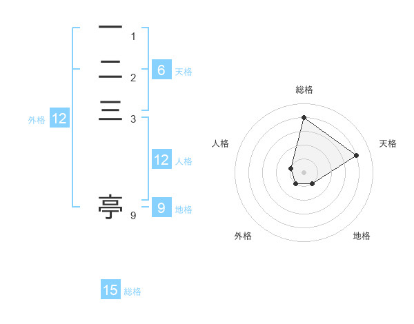 一二三 亭さんの総格は15画の4点!