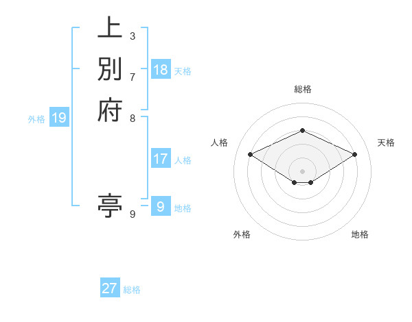 上別府 亭さんの総格は27画の3点!