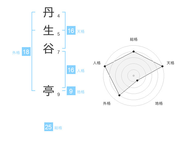 丹生谷 亭さんを姓名の画数から五運を鑑定
