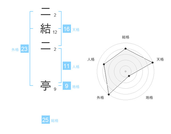 二結二 亭さんの外格は23画の5点!