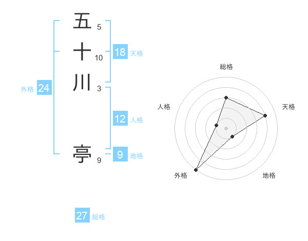 五十川 亭さんの総格は27画の3点!
