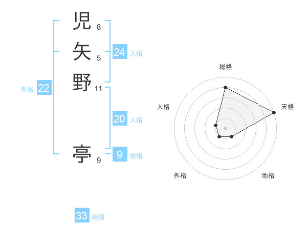 児矢野 亭さんの総格は33画の4点!
