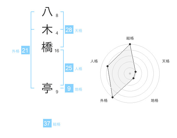 八木橋 亭さんの総格は37画の5点!