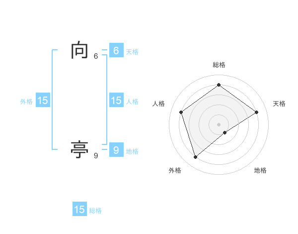 向 亭さんの総格は15画の4点!