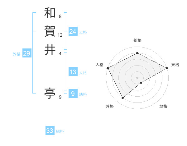 和賀井 亭さんの総格は33画の4点!