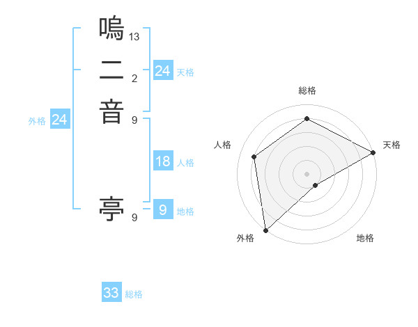 嗚二音 亭さんの総格は33画の4点!