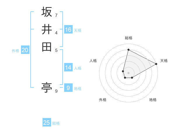 坂井田 亭さんの総格は25画の4点!