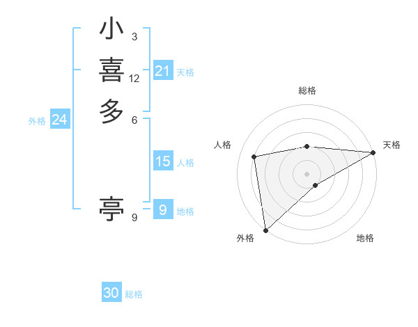 小喜多 亭さんの総格は30画の2点!