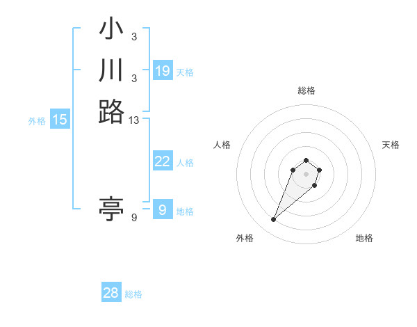 小川路 亭さんの総格は28画の1点!