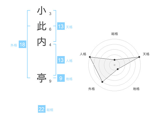 小此内 亭さんの天格は13画の5点!