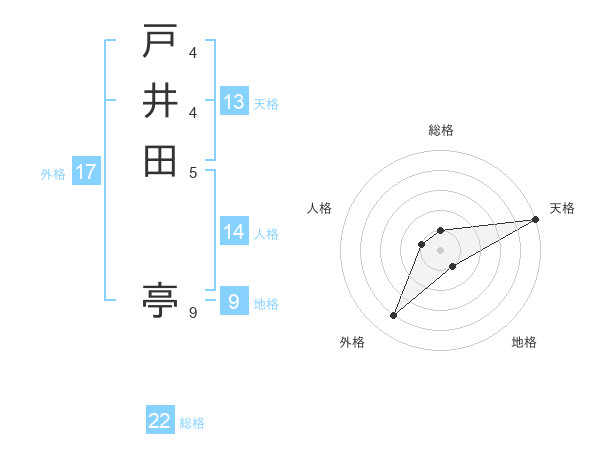 戸井田 亭さんを姓名の画数から五運を鑑定