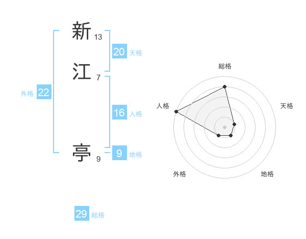 新江 亭さんの総格は29画の4点!