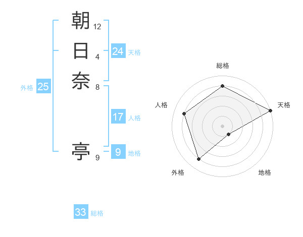 朝日奈 亭さんの天格は24画の5点!