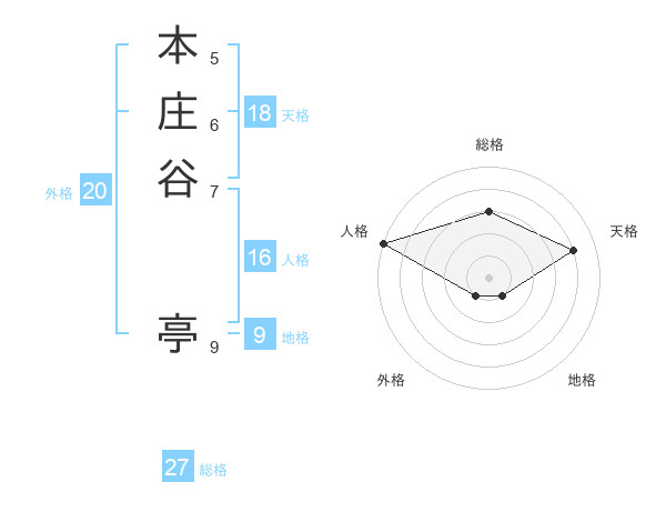 本庄谷 亭さんの総格は27画の3点!