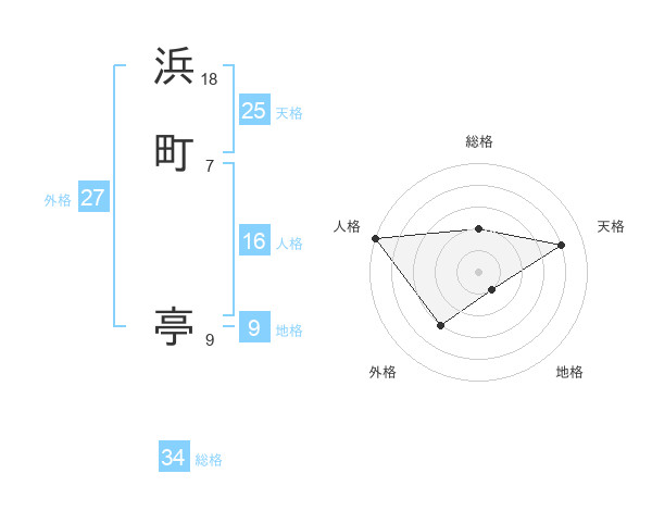浜町 亭さんの総格は34画の2点!