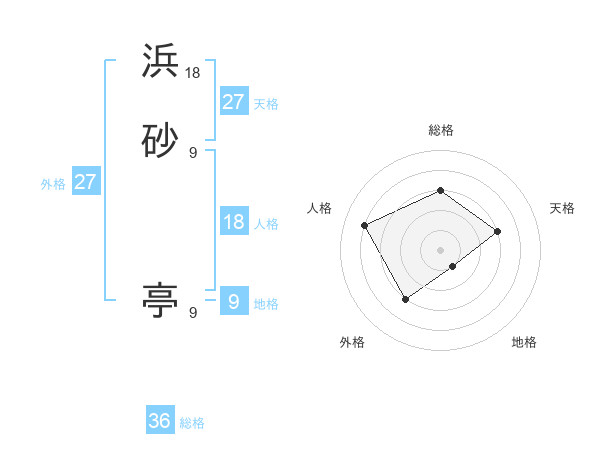 浜砂 亭さんの総格は36画の3点!