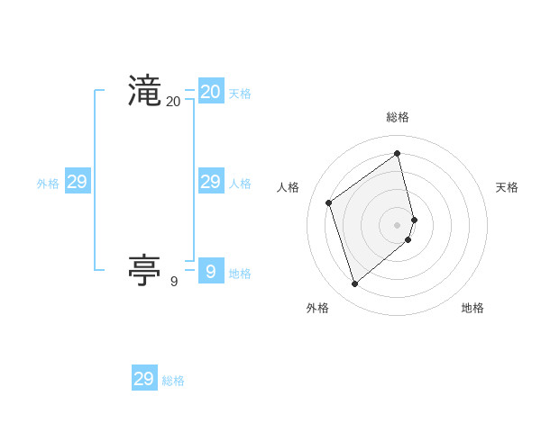 滝 亭さんの総格は29画の4点!