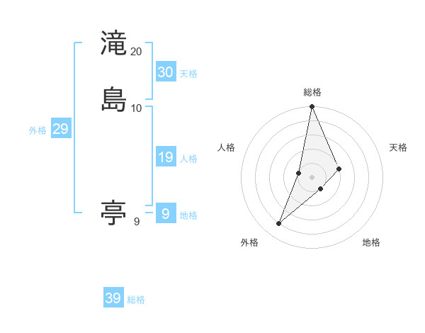 滝島 亭さんの総格は39画の5点!