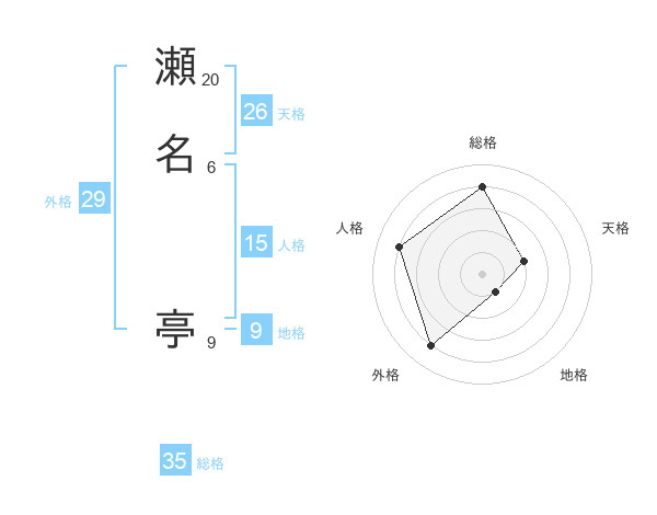 瀬名 亭さんを姓名の画数から五運を鑑定