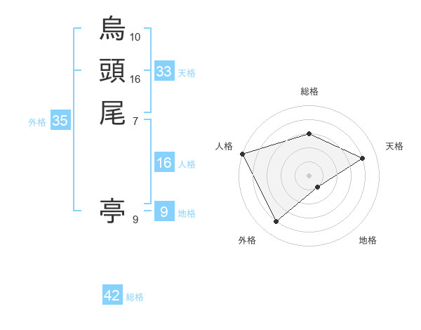 烏頭尾 亭さんを姓名の画数から五運を鑑定