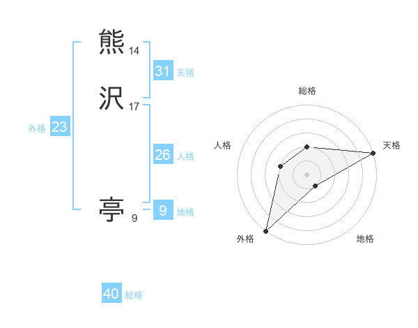 熊沢 亭さんを姓名の画数から五運を鑑定
