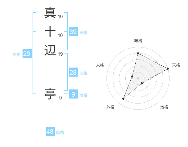 真十辺 亭さんの総格は48画の4点!