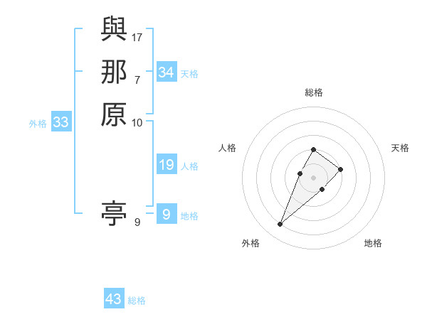 與那原 亭さんの総格は43画の2点!