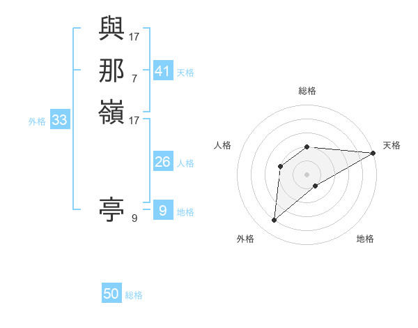 與那嶺 亭さんの総格は50画の2点!